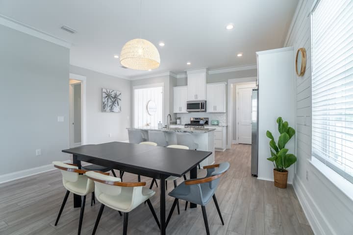 Coastal Sol is a tranquil beach house nestled along the shore of the gulf coast. This brand-new construction home offers a spacious floorplan and filled with all the amenities you could want. With plenty of outdoor space you can relax on the patio or enjoy morning coffee while taking in the Alabama Breeze. The interior is thoughtfully furnished with comfortable boho modern décor and plenty of windows allowing for the natural sunlight throughout the home. Perfect for a group of friends, couples or large families seeking a peaceful retreat surrounded by nature.